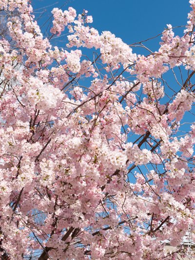 Floraison spectaculaire au mois d’avril en bouquets retombants rose foncé au début, s’éclaircissant sur la fin de floraison